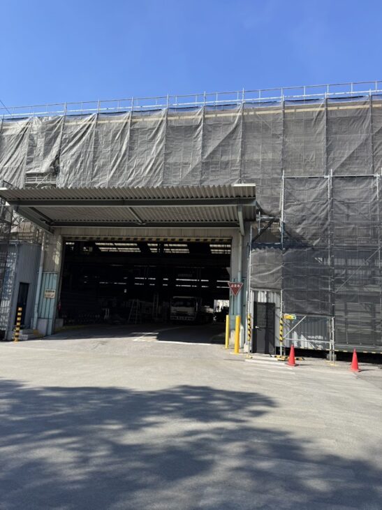 王子製鉄群馬工場の外壁改修工事に伴い、仮設足場を施工いたしました。